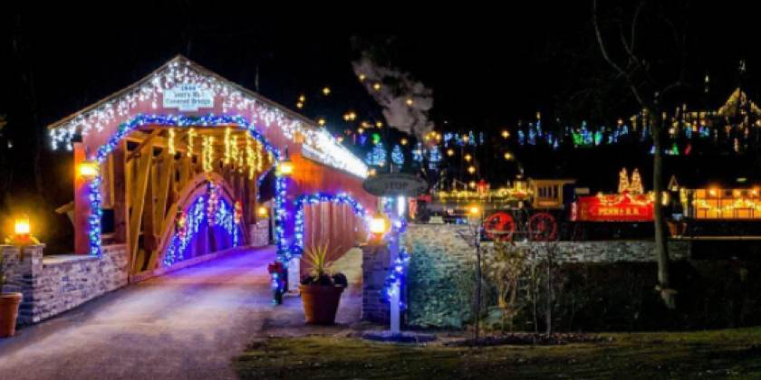 Taking place at Stone Gables Estate, this 3-mile drive-thru includes a display of over 600,000 LED lights. The experience also features new storyboards, such as the 12 Days of Christmas and three new light displays with a light motion train, wreaths, 18-foot trees and more. There’s plenty of other activities as well, such as the Harrisburg, Lincoln & Lancaster Railroad steam train decorated for the holidays and the Star Barn Village, Herr’s Mill Covered Bridge, and other structures covered in lights.