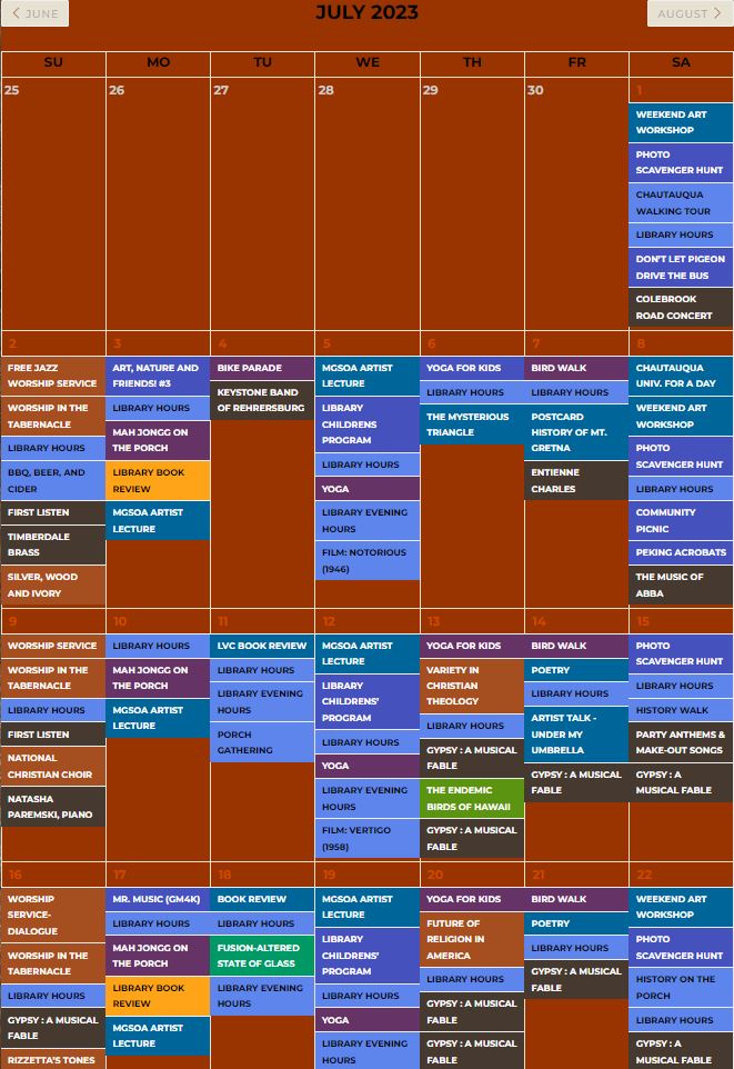 You can also sign up for their newsletter, follow them on social media, or contact them by phone or email if you have any questions or suggestions. MT. Gretna is a place where you can experience the arts and nature in a friendly and welcoming atmosphere.