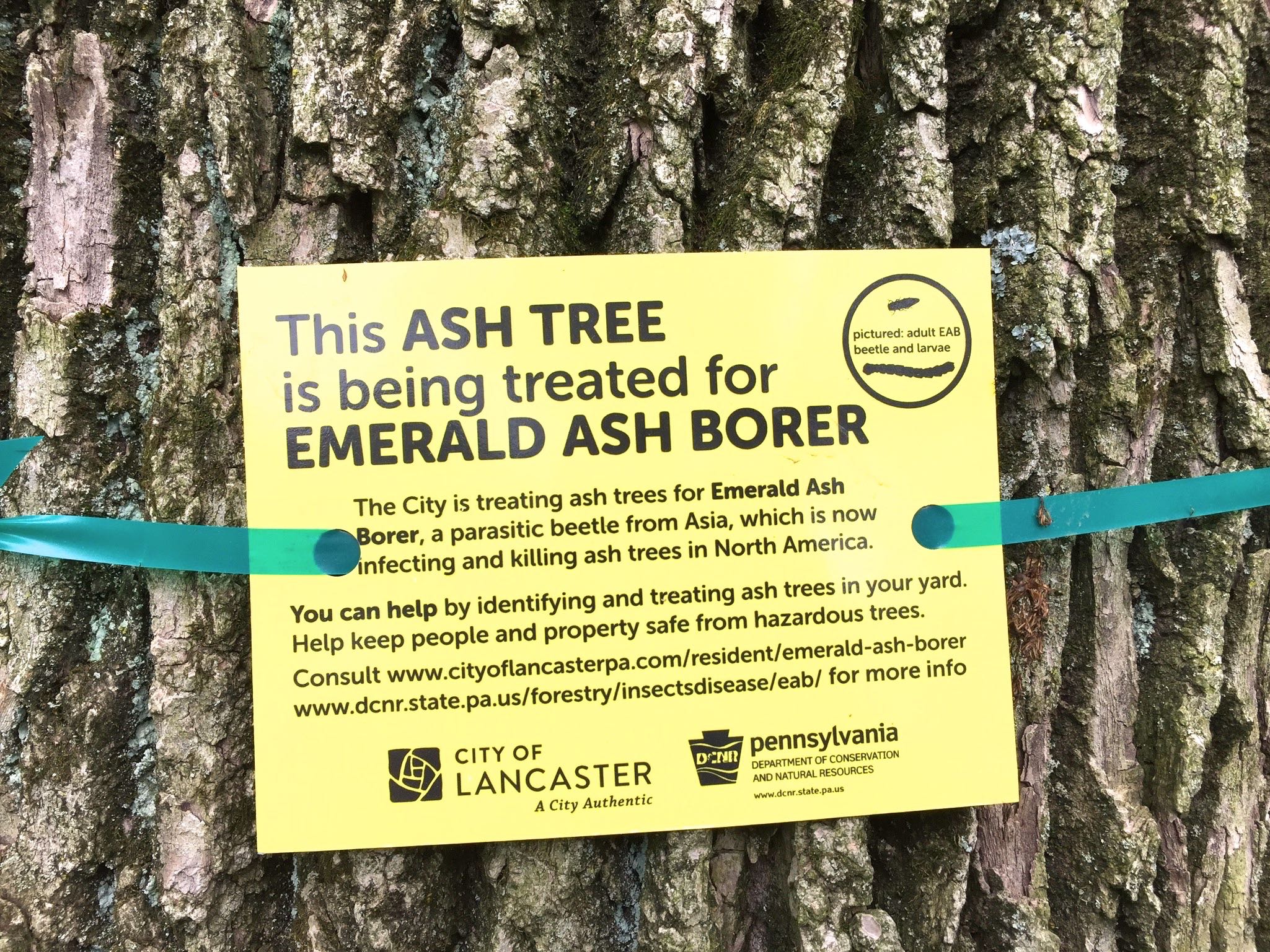 If you spend much time around Long’s Park and other parks maintained by the City of Lancaster, you’ll notice these little yellow signs. I’ve included one below in case you were curious and also so you can look out for the Emerald Ash Borer in your own back yard!
